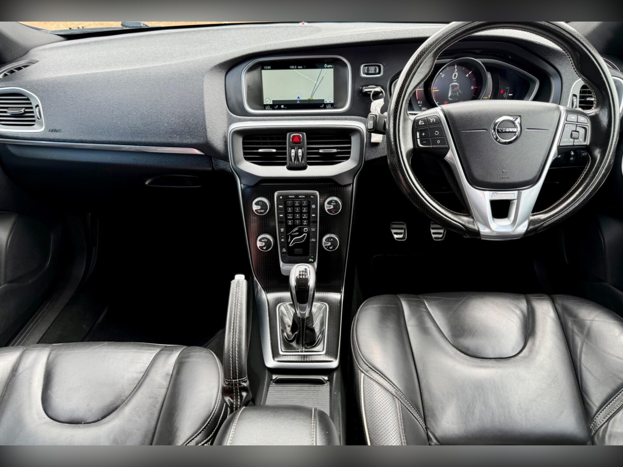 - Leather Steering Wheel with Chrome Deco and R-Design Logo